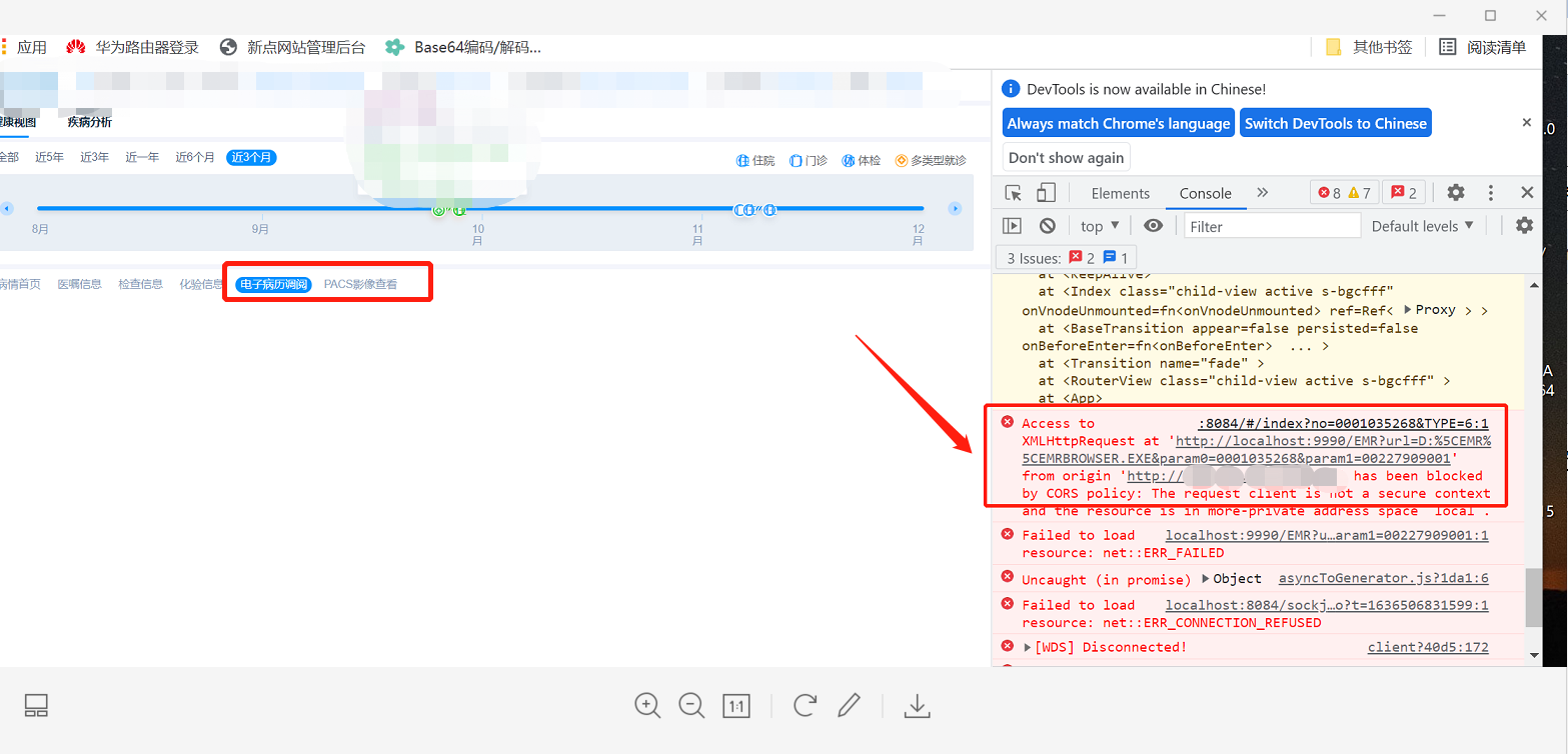 自己的错误:在本地react项目中启动服务后,访问localhost:9990 本地程序,报跨域错误,提示请求客户端不是安全上下文,资源位于更私有的“本地”地址空间中,不能访问local